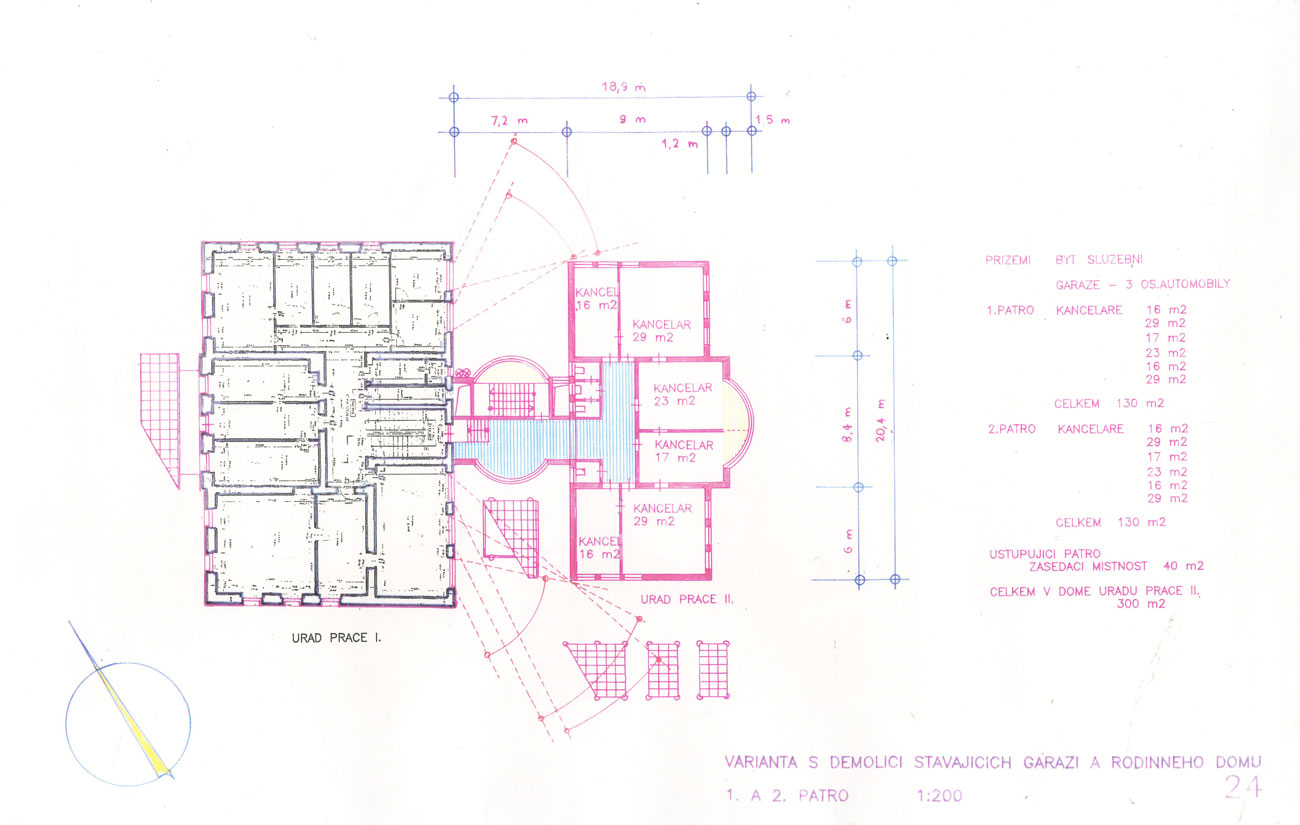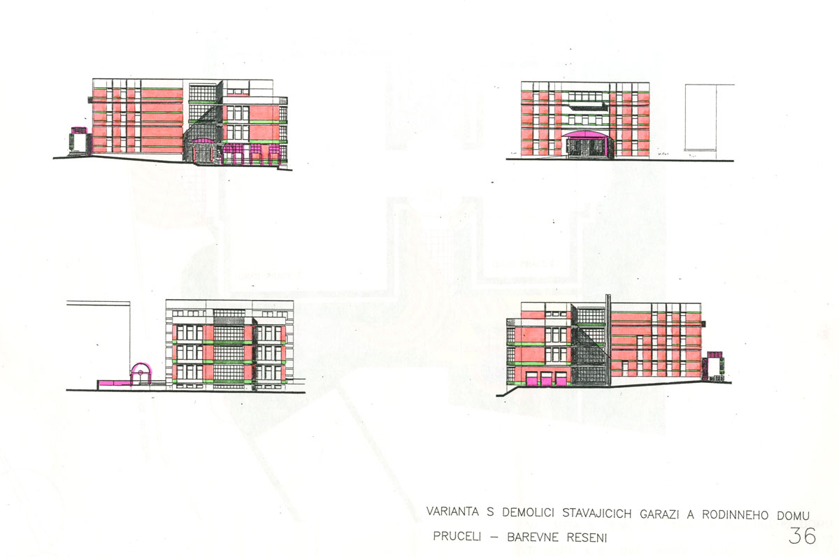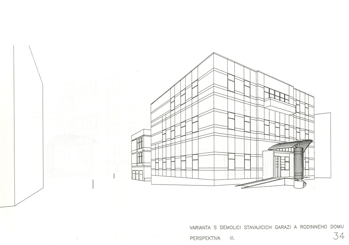 funkcionalistická, spíše minimalistická stavba ve tvaru kostky, nečekaná v Kutné Hoře přímo pod jejím centrem. Nedefinovatelná parcela možného rozvoje byla předmětem úvahy potřebného rozšíření administrativního provozu včetně vybudování akcentu vstupu do budovy. Přístavba pokračuje v duchu hotového jádra, je doplňována kontrastem křivek ze sklobetonů a doprovodnými parterovými prvky. Projektový úkol, který vyplynul z reference vybudované úpravy v Praze u Hybernů, skončil v poloze studie po zpracování předběžného odhadu rozpočtových nákladů.