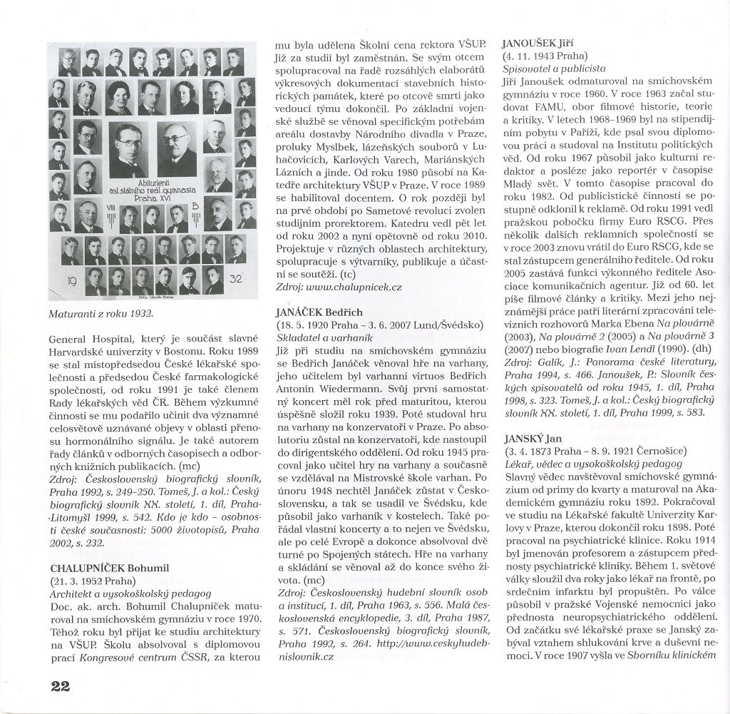 I když bych tuto dobu nechtěl již nikdy opakovat, vzpomínám na ni s láskou i s obdivem, že jsem to nakonec všechno zvládl. Měl jsem to neuvěřitelné štěstí, že mými profesory a profesorkami byly skutečné osobnosti, že tehdejší osnovy uvolnily procesy kolem šedesátého osmého roku a že částečná personální výměna pedagogického sboru přišla později. Asi jedině díky nearchivaci průšvihů, které jsem během studia způsobil a které můj otec chodil za třídní profesorkou mírnit s květinami v ruce jsem se ve sborníku stotřicítky vybraných absolventů ocitl. Je pro mne velikou ctí být jedním z hesel v takto reprezentativní společnosti.