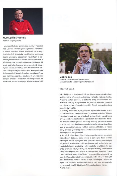 Vážím si, že mými spolupracovníky jsou i vynikající tvůrčí osobnosti. Jejich bohatou činnost jsem se snažil v přílohách uvést. Vážím si, že o vynikajících osobnostech mohu i psát nebo jim zahajovat výstavy. Byť i přes hluboký osobní citový vztah k jedné autorce se snažím vždy o objektivitu, znalost jejího vnitřního světa a nikoliv o chválu, která by byla mlácením prázdné slámy. Dávám si záležet na tom, aby se při každé příležitosti otevřel jiný problém. Vím, že to lidé vnímají.