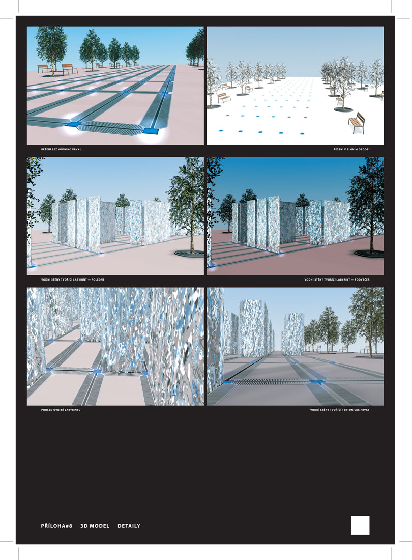 LABYRINT, varianta, která vznikla ve spolupráci s Mgr.A. Otakarem Duškem a počítačovým odborníkem J. Sochorem. Tento návrh získal druhou cenu. Původní Duškova myšlenka bloudit mezi náhodně existujícími vodními stěnami, jejichž technickou realitu dodal J. Sochor, dostala od BCH architektonické ztvárnění včetně konceptu programového osvětlení a architektonického vymezení místa s pevným rastrem a podrobně specifikovaným designem. Varianta by byla sezonní, v mrazivých dnech by však v daném prostoru nic pocitově nescházelo – jednalo by se o plochu náměstí, s kovovými odtokovými rošty, s osvětlením, zabudovaným v dlažbě v pravidelném rastru. Podle vyjádření zástupců městské části získala tato varianta velké sympatie a vzbudila pozornost a zvědavost především. Překážkou byly pochyby o spolehlivosti technologií, což je zcela pochopitelné. Vítězné řešení - bronzové plastiky v daném architektonickém řešení vodoteče je již realizováno a prostor "náměstíčka" výrazně a velmi pozitivně obohatilo.