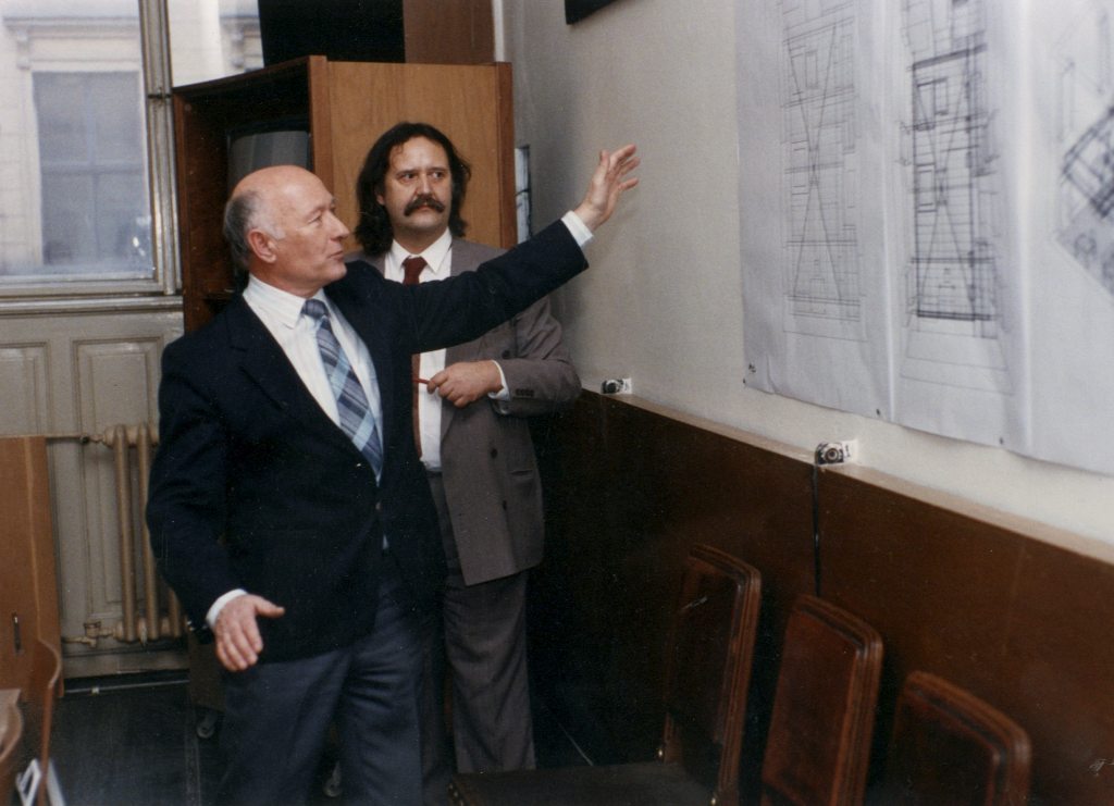 Při této rekonstrukci byly očištěny žulové sloupy v hlavním schodišti od více než staletého šlemu, v druhém schodišti byl bohužel stav pískovce již katastrofální a pokus o jeho repasi se dle mého názoru až příliš nezdařil. Byly doplňovány chybějící kuželky zábradlí, chybějící litinové výplně a dřevěná madla. Budova byla vybavena nouzovým požárním osvětlením, generální výměnou elektroinstalace a svítidel na chodbách. Došlo k repasi štukatérské práce – ornamentálních patek kleneb, k opravám nebo celkové výměně terazzo podlah, repasovány byly i dveřní konstrukce, do výstavní místnosti bylo na dveřích vysokého řádu obnoveno původní fládrování. Byly vytvořeny předpoklady pro instalační systémy na chodbách. Jejich cílem byla snaha neničit dům každou expozicí v rytmu poloviny roku. Ve vyšších podlažích byly instalovány lineární světelné zdroje. V přízemí byla původní " tovární " vrátnice s visící kolejnicí pro požární poplach a hřmotným nápisem HLÁŠENÍ NÁVŠTĚV nahrazena skleněným výkladcem, vzbuzujícím dodnes řadu rozporuplných diskuzí. Samotná vrátnice se stala jakýmsi fenoménem problému tváře školy vůbec. Byla tím nejdiskutovanějším problémem. Sám jsem inicioval studentskou soutěž na její řešení. Návrhy byly překvapivé i konvenční. Odvahu účastnit se měli i externí pedagogové. Skutečně post vrátného školu tehdy dynamicky rozhýbal. Bohužel nevím, zda jsou tyto návrhy nějak archivovány. Zatím se k budoucnosti nechováme odpovědně.